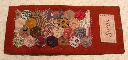 We were all packed and ready to sew at 9am today. We mostly kept working on our project from yesterday. I thought I would have finished my needle case today, but not quite, just a few more stitches to go. I'll keep you in suspense and show you when I'm finished.